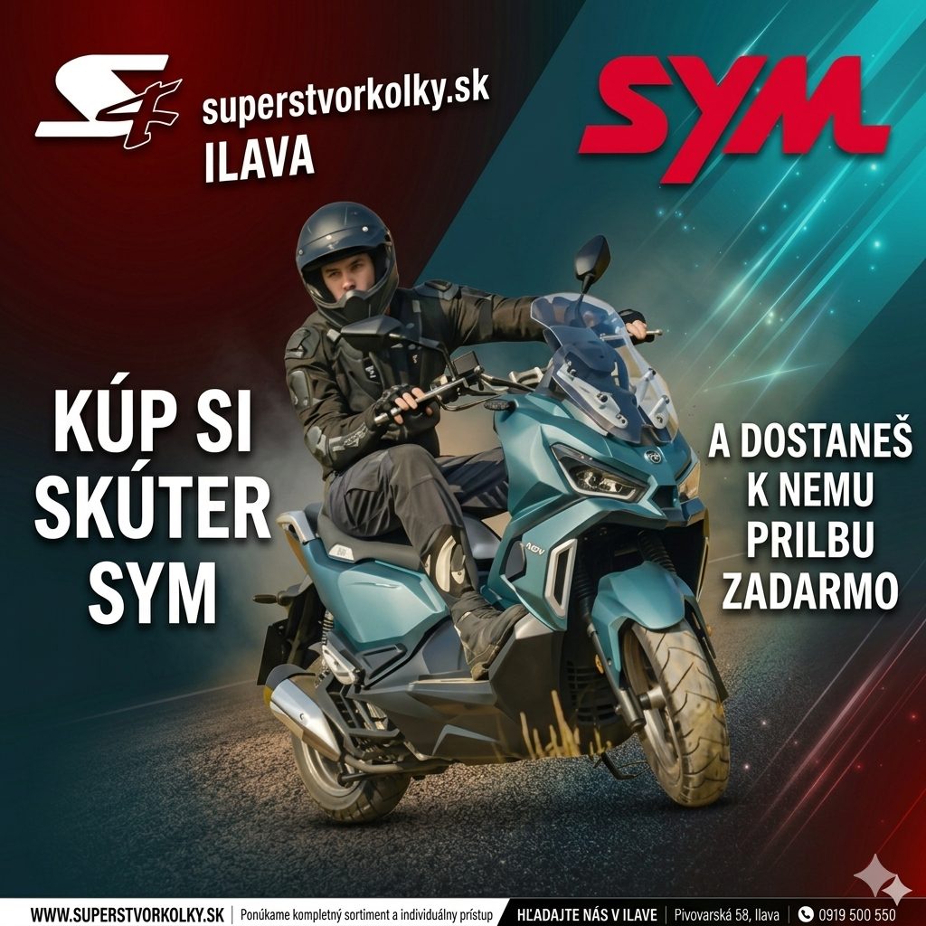 V tomto období sme si u nás v Superštvorkolky.sk spolu so značkou SYM ako našim dlhoročným partnerom, ktorých sme dealermi už dlhý čas pripravili zaujímavú akciu - kúp si u nás skúter SYM a dostaneš ku nemu úplne zadarmo prilbu v hodnote 80,-€.