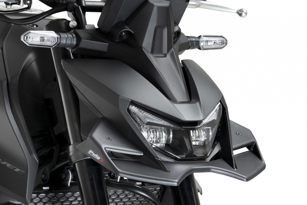 Z hlediska aerodynamiky nový přední spoiler Naked od Puig usměrňuje vzduch, který přichází čelně k chladiči, a díky svým tvarům poskytuje téměř 2 kg přítlaku na přední kolo, čímž zároveň vytváří efekt proti zdvihání předního kola (anti-wheelie), efekt proti vibracím řídítek při vysokých rychlostech (anti-shimmie), lepší stabilitu při brzdění a větší jistotu při změně směru.
