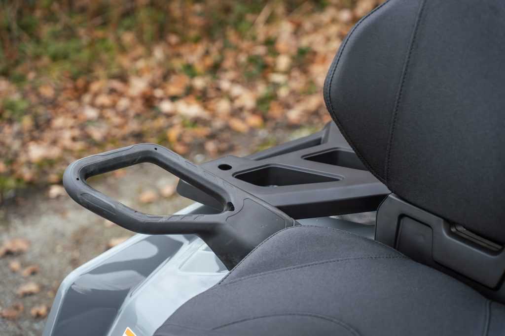 Vďaka novým ergonomickým sedačkám budete jazdiť v pohodlí po celý deň. Kompozitové nosiče a praktické úložné schránky pojmú všetko, čo chcete vziať so sebou. Veľká svetlá výška a príjemne nastavený podvozok zaistí komfortnú jazdu aj v ťažkom teréne. Kvalitu jazdy zvyšujú kryty rúk a najmä účinný posilňovač riadenia EPS.