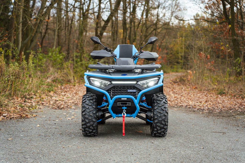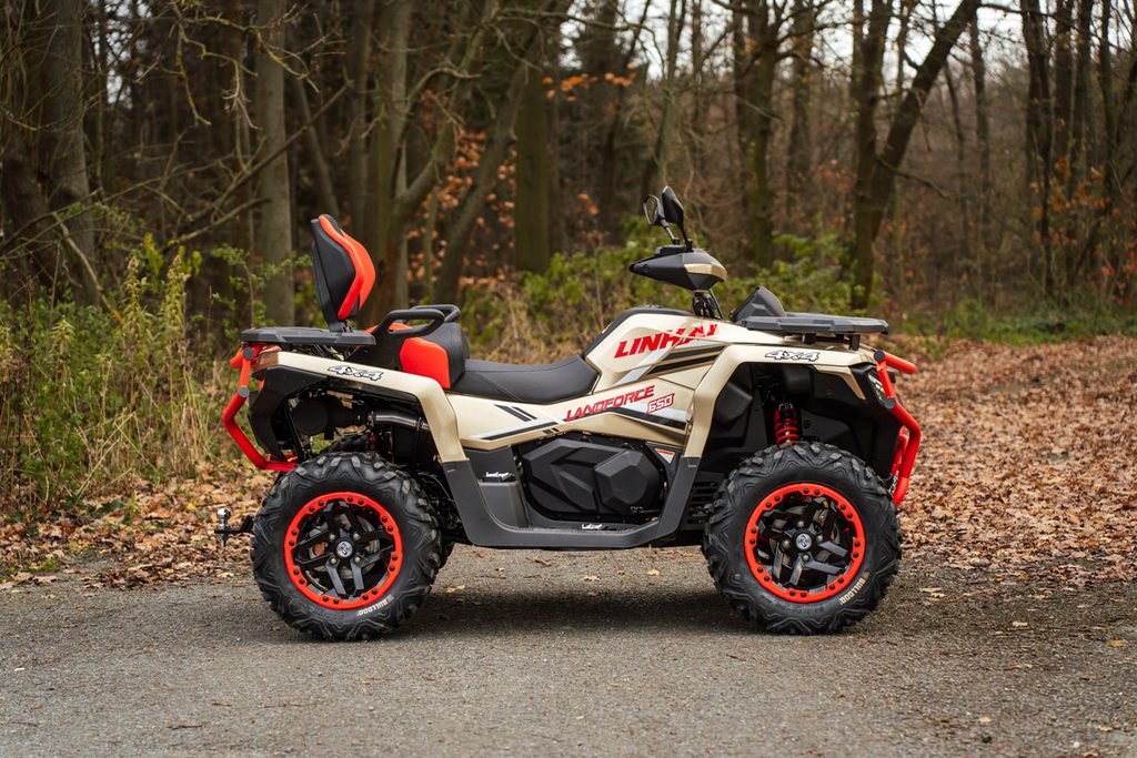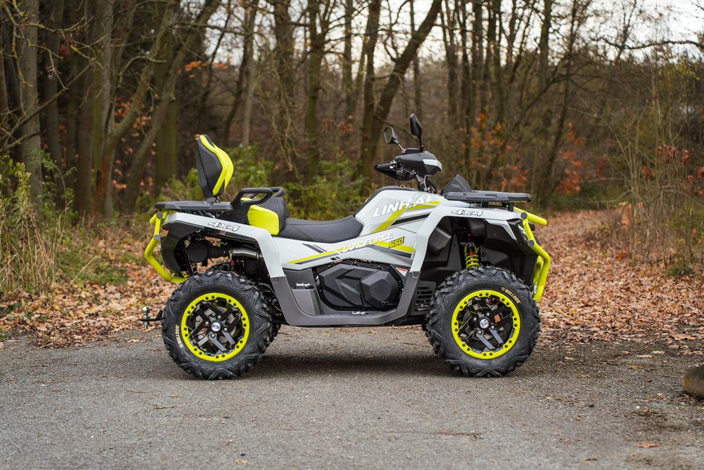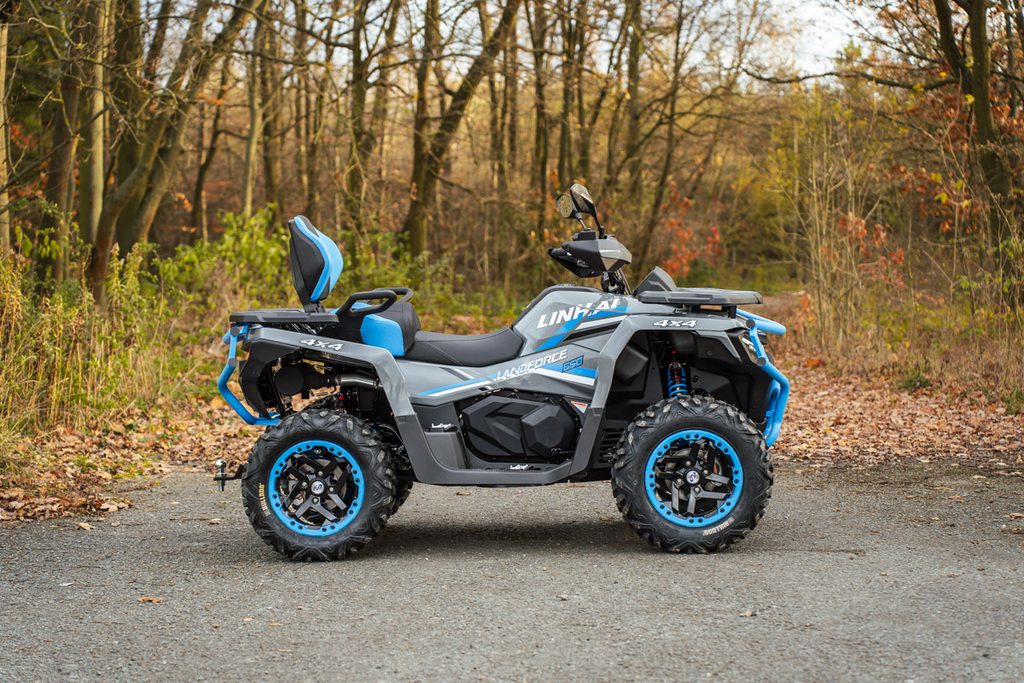Linhai Landforce 650L Pro prináša mimoriadne bohatú výbavu, ktorá zahŕňa plne nastaviteľné tlmiče s oddelenou nádobkou piggyback, masívny predný a zadný oceľový nárazník, atraktívne 14" osemlúčové zliatinové kolesá so systémom Beadlock a značkovými 26" pneumatikami Bulldog, hliníkové protišmykové prešívanú sedačku a opierku chrbta spolujazdca, alebo farebne lakované A-ramená. Vo výbave samozrejme nechýba elektrický posilňovač riadenia, homologované ťažné zariadenie, 3000 lbs navijak, veľký 7“ TFT displej, kompozitné nosiče vpredu aj vzadu ani veľkoplošné kryty rúk.