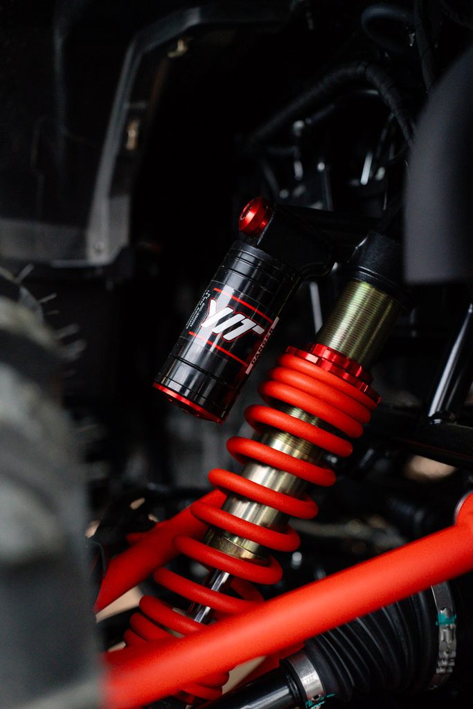 S komfortne vyladeným podvozkom, nezávislým zavesením kolies, vysokými zdvihmi perovania a plne nastaviteľnými plynokapalinovými tlmičmi s oddelenou nádobkou pokoríte aj najťažší terén. Veľké kolesá s 26-palcovými pneumatikami poskytujú lepšiu priechodnosť a súčasne dávajú štvorkolke väčšiu svetlú výšku. Pneumatiky Bulldog s hlbokou agresívnou vzorkou vás nenechajú na holičkách ani v náročnom teréne alebo hlbokom bahne. Kolesá Beadlock držia pneumatiky spoľahlivo na mieste a umožnia vám jazdiť bez obáv, že sa v drsnom teréne vyzlečie pneumatika z ráfika.