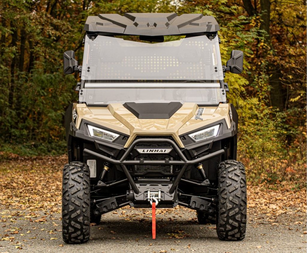 Aj napriek úplne bezkonkurenčnej cene ponúka Linhai UTV 650 T-BOSS EPS bohatú výbavu už v základe. Novo tu nájdete veľké plastové dvere, nechýba pevná plastová strecha odolná UV žiareniu, plnohodnotné čelné plexi, masívne predný nárazník, bezpečnostné siete vo dverách, madlá pre spolujazdcov, hlavové opierky, ťažné zariadenie alebo elektrický navijak 3000lbs s diaľkovým ovládaním.
