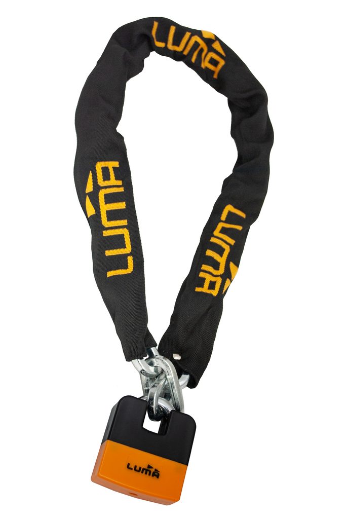 Oranžová zoceľovej reťaze dlhej 120 cm a šírky 10 mm, ktorá poskytuje dostatočnú bezpečnosť. Zámok je vybavený protivŕtacím mechanizmom. RCT 6,5/10.