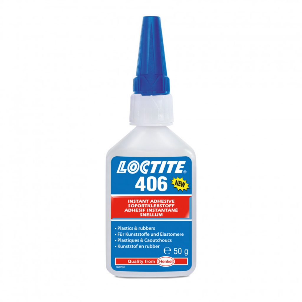 LOCTITE 406 je vteřinové lepidlo určené zejména k rychlému lepení plastů a pryže. Tento produkt nabízí mimořádně nízkou viskozitu. V kombinaci s primerem Loctite pro kaynoakryláty, lze také použít na obtížně lepitelné plasty.