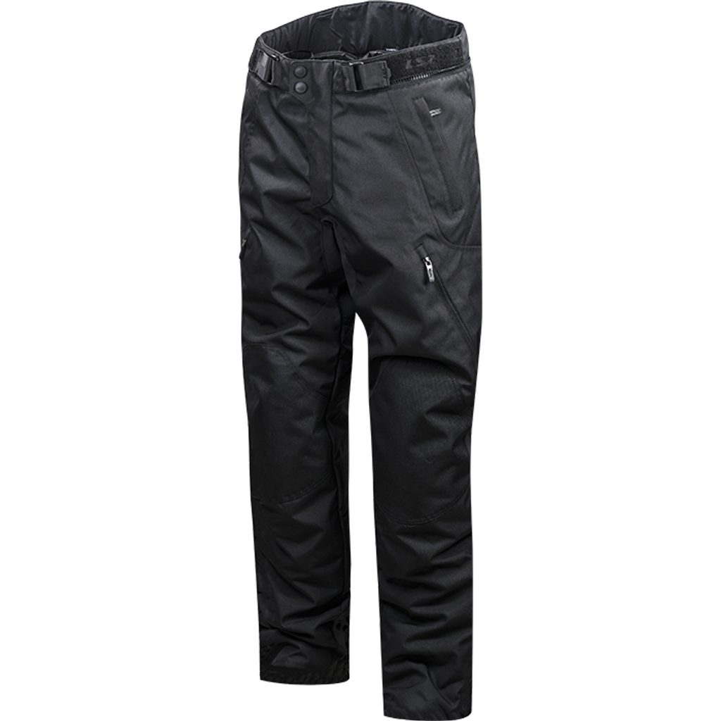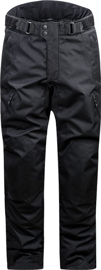 Prepracované pánske motocyklové nohavice s priedušnou membránou, odnímateľná termovložka, vyberateľné certifikované chrániče bedier a kolien, strečové panely na chrbtaku a kolienou, reflexné prvky, zips pre spojenie s bundou