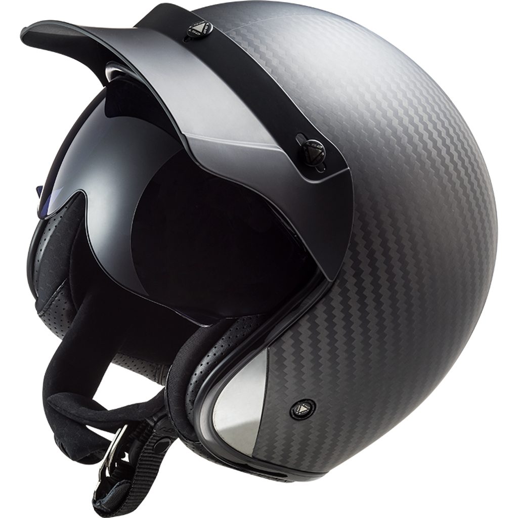 Ľahká otvorená karbónová prilba v módnom luxusnom neo-retro vzhľade. Ideálne pre custom motocykle, café racer, choppre, veteránov, retro skútre a ďalšie, pre cestovanie i mesto. Integrovaná slnečná clona chráni oči pred ostrým slnkom. Extrémne ľahká škrupina z krížovo tkaných širokých uhlíkových vlákien dáva prilbe mimoriadne vysokú odolnosť proti nárazu, exkluzívny vzhľad a hmotnosť iba 850 g. Špičková helma za dostupnú cenu je dodávaná vrátane snímateľného slnečného šiltu.