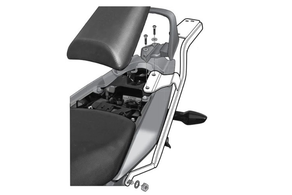 K upevnění vrchního kufra SHAD na motorku stačí namontovat tuto montážna sadu, plotna je vždy součástí kufra (kromě kuforů TR48/TR37).