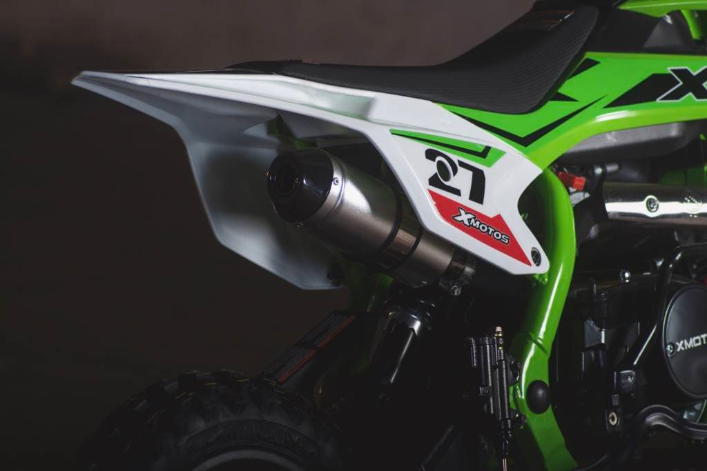 Motocykel XMOTOS - XB27 125cc 4t E-start 14/12 má výkon 8kW, manuálnu prevodovku, športový výfuk, predné i zadné hydraulické kotúčové brzdy, masívne predné tlmiče, zadné odpruženie s nastaviteľnou tuhosťou, elektrický i nožný štartér, predné koleso 14 palcov, zadné koleso 12 palcov.