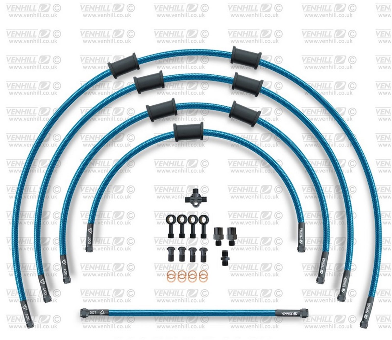 ŠTANDART -predok -sada Venhill POWERHOSEPLUS KAW-11006FB-TB (3 hadice v sade) priehľadné modré hadice, čierne koncovky