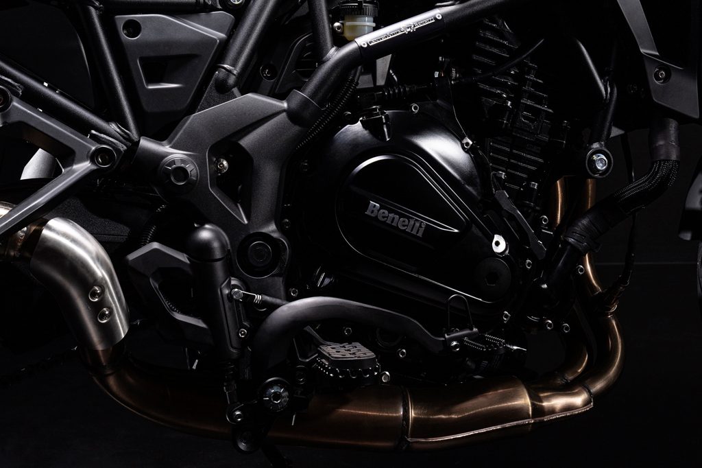 Dizajn, ktorý sa dokonale spája s úplne novým dvojvalcovým motorom Benelli s objemom 698 cm3 vpredu, navrhnutým ako výsledok skúseností získaných pri vývoji motorov s objemom 500 cm3 a 800 cm3, z ktorých sa zrodila táto nová platforma. Vyznačuje sa technickými riešeniami používanými už v minulosti, ale modifikovanými podľa logiky redukcie hmotnosti a rozmerov, čím sa zlepšuje výkon vozidla. Rovnako ako cestná verzia, tlčúce srdce TRK 702 X poskytuje výkon 76,2 k (56 kW) pri 8750 ot./min a krútiaci moment 68,2 Nm pri 6250 ot./min., vždy pripravený a pútavý. Vyznačuje sa dvojitým časovaním vačkového hriadeľa v hlave so 4 ventilmi na valec, s reťazovým pohonom a kľukovým hriadeľom s kľukovými čapmi posunutými o 180°. Elektronické vstrekovanie paliva s 41 mm dvojitým telom škrtiacej klapky. Prevodová jednotka je na druhej strane vybavená odnímateľnou 6-stupňovou prevodovkou na strane spojky, ktorej pomáha mokrá spojka s meničom krútiaceho momentu, ktorá výrazne znižuje silu pôsobiacu na páku spojky pri zachovaní hladkého a presného zaraďovania prevodových stupňov. Motor s objemom 698 cm3 obsahuje aj verziu so zníženým výkonom na 35 kW pre licencie A2.