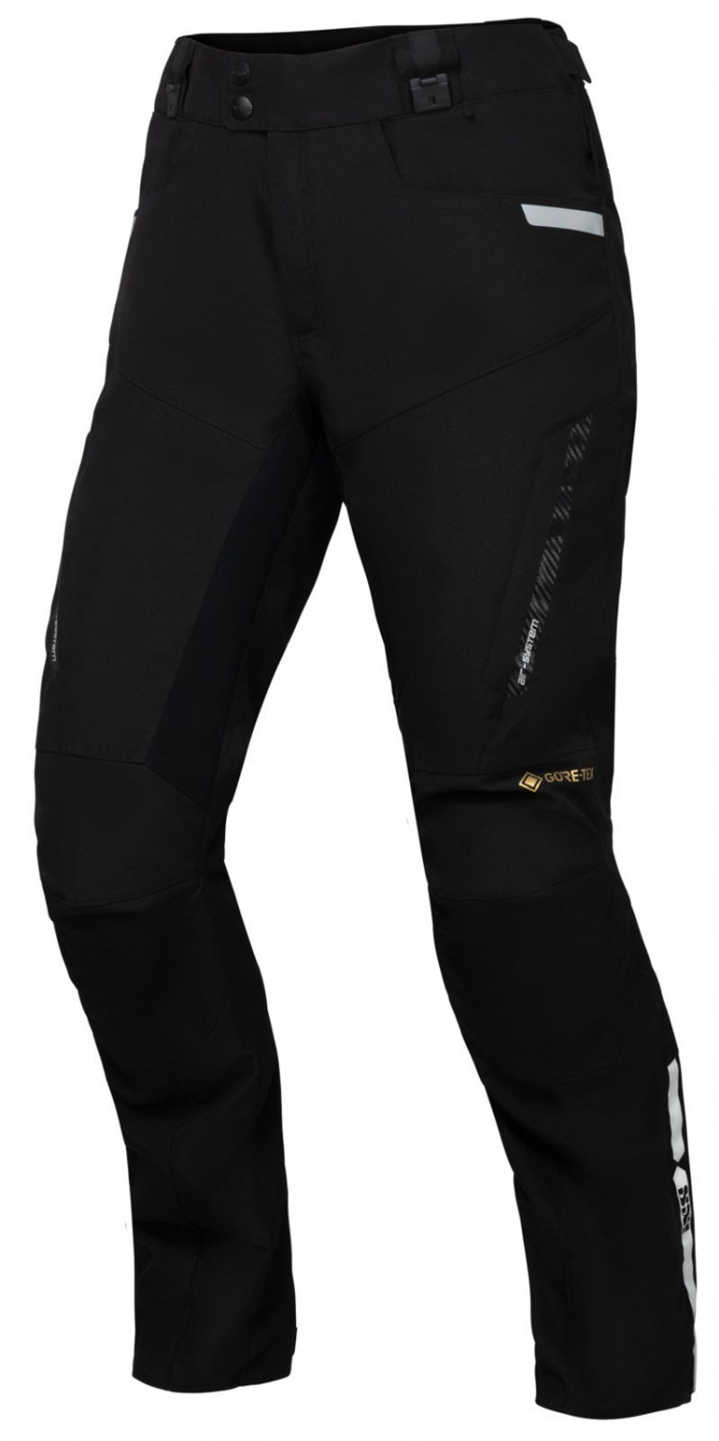 Vysoce kvalitní a velmi komfortní voděodolné textilní kalhoty s GoreTex® membránou, vyrobené z iXS strečového materiálu, který se skvěle přizpůsobí jízdní pozici a neomezuje pohyby na motorce. Kalhoty tvoří cestovní komplet s bundou Horizon, se kterou se spojí díky unikátnímu systému magnetických přezek.