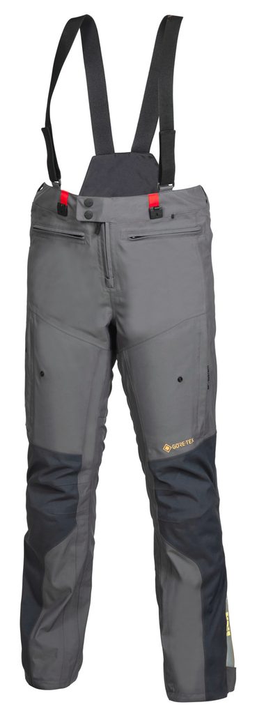 Špičkově vybavené lehké Goretexové kalhoty, které tvoří cestovní komplet s bundou iXS MASTER-GTX. Pro sepnutí slouží originální systém magneticky zavíraných přezek, které jsou připevněné na vnitřní šle všité do bundy. Díky nim nebudou kalhoty po připevnění stahovat spodek bundy, ale váha se roznese do konstrukce a zajistí tak dokonale pohodlné nošení.