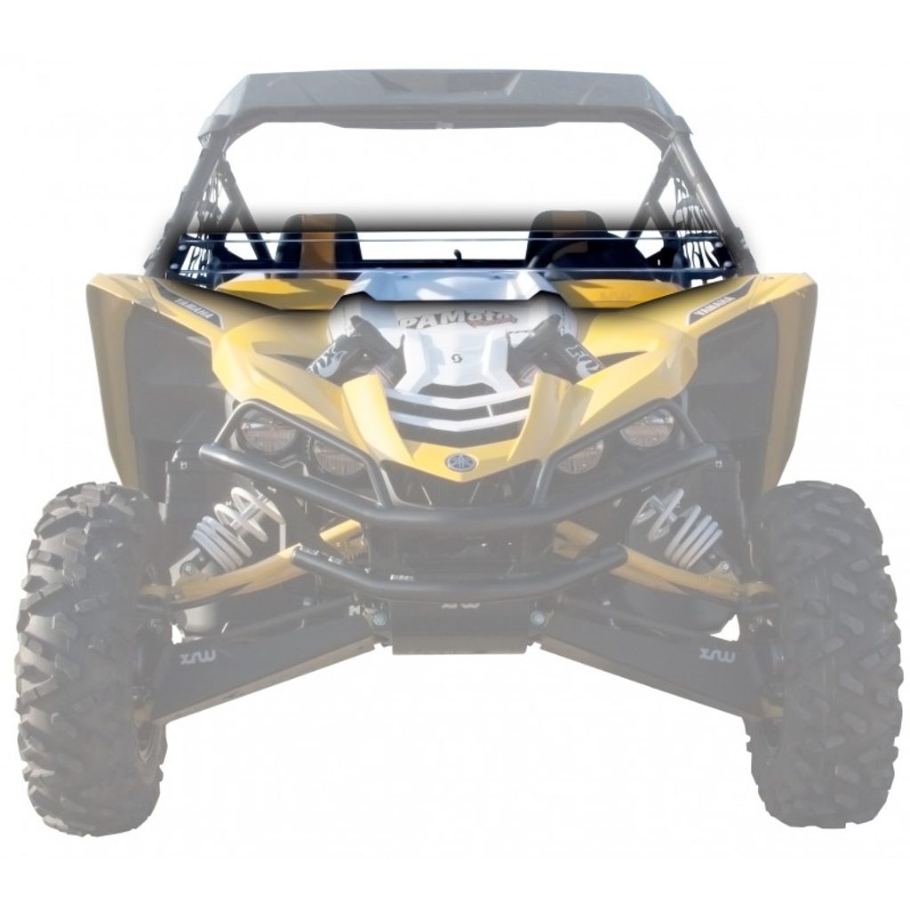 Nízké čelní sklo XRW pro Yamaha YXZ1000R, usměrňuje proud vzduchu nahoru a přes jezdce, omezuje víření prachu, z čirého nárazuodolného 6mm Lexanu, k montáži na originální ochranou klec, čiré / průhledné